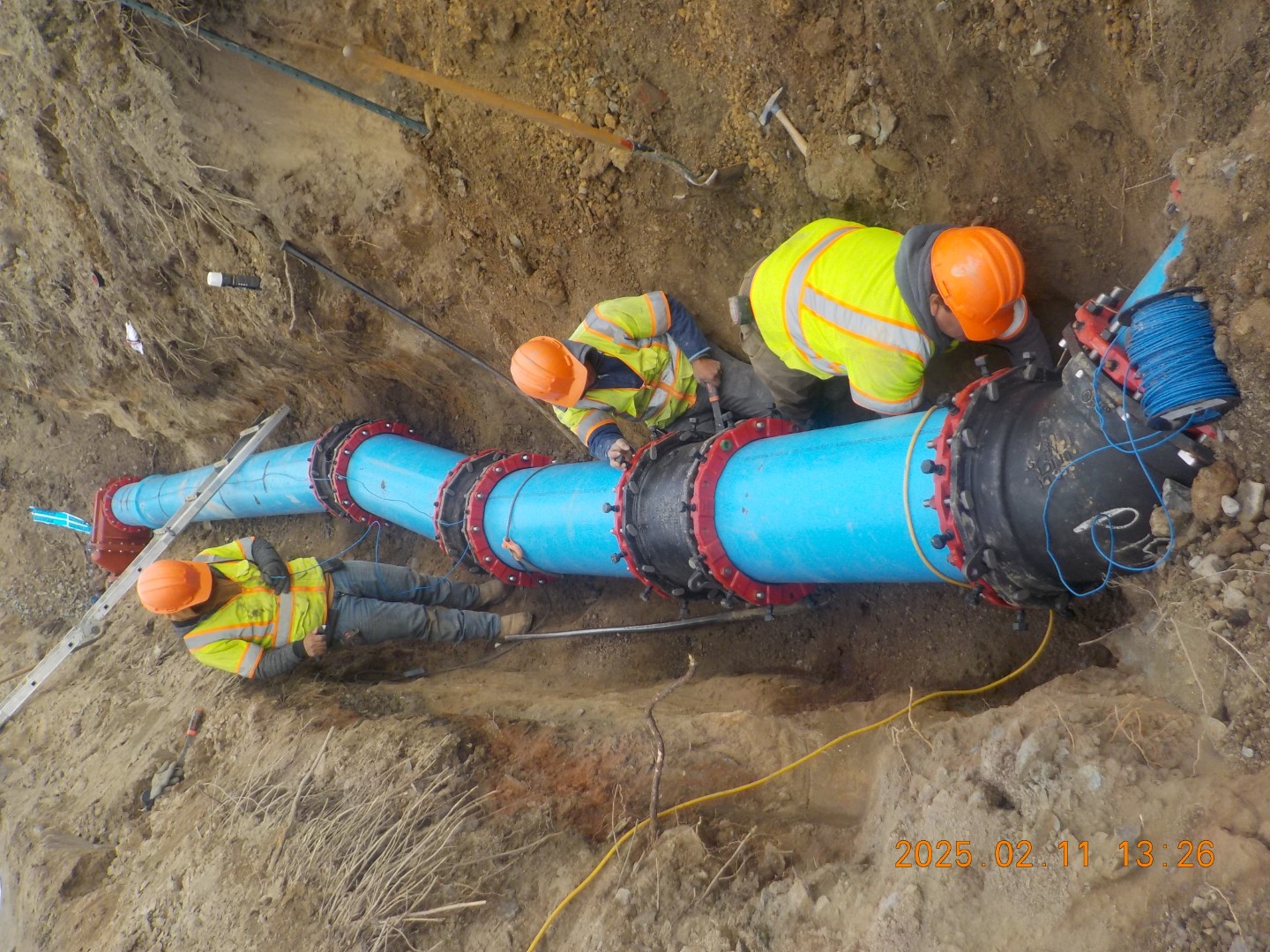 The contractor, Teal Construction, Inc., started the HDD in early November. GMB provided construction contract administration, and on-site daily project representation, ensuring construction met the intent of the project design goals. The HDD was successfully completed on December 21, 2024. The watermain installed by open cut on American Legion Road was installed in January and February of 2025, along with connections to the existing system at Savannah Road. Substantial Completion of the project was on March 10, 2025.